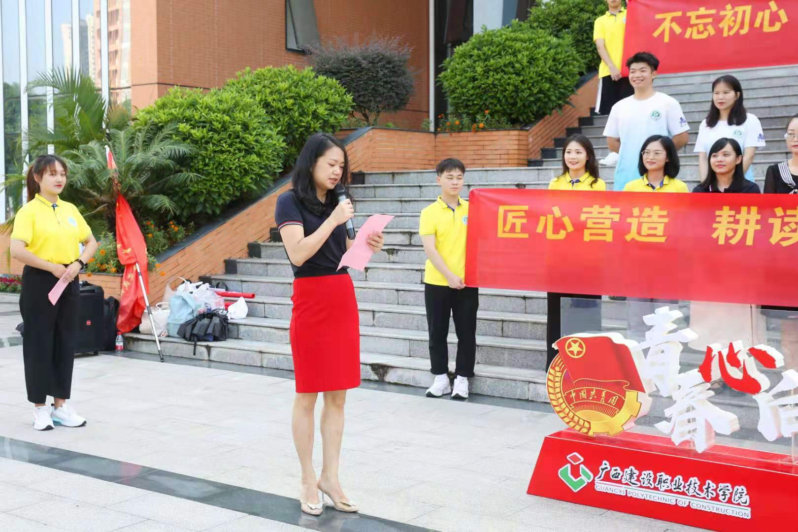 黃藝副總經理在出征儀式上講話 據悉,我公司去年與廣西建設職業技術學院校企合作的“三下鄉”社會實踐活動收到了良好的社會效果。再次出征啟程,依托學?!叭恕笔痉断灯脚_,“雙高”院校建設工程管理專業群建設,融合互聯網+項目打造,由廣西建設職業技術學院管理工程系、馬克思主義學院聯手組織,得到我公司與廣西建設工程造價管理協會全程指導,既加強了校企合作聯系,又體現了行業企業的社會擔當,更借助實踐檢驗育人實效,實現了學校、行業、企業“三線交融”,匯聚校行企力量,助力鄉村振興。