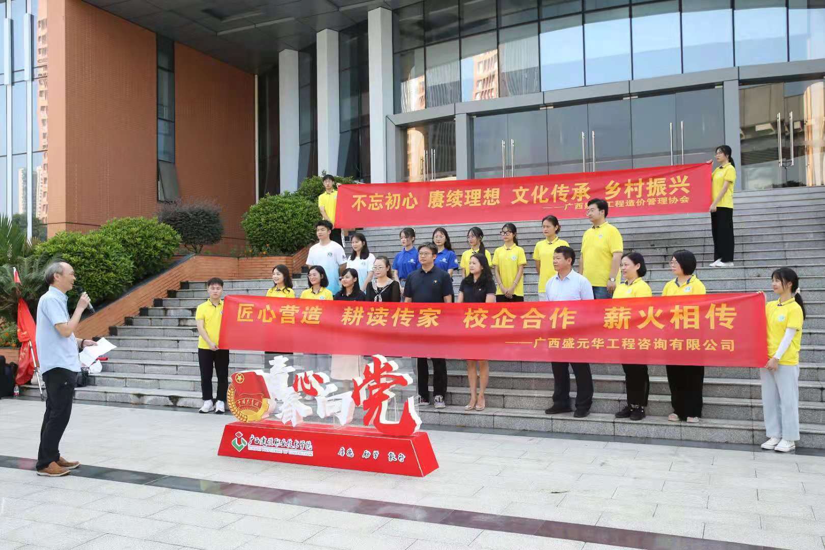 7月26日上午,廣西建設職業技術學院管理工程系團總支“匠心營造·耕讀傳家”古建筑文化傳承實踐團再次出征,廣西盛元華工程咨詢有限公司(已下簡稱我公司)副總經理黃藝、BIM中心負責人覃永松作為校企合作企業方代表,與廣西建設工程造價管理協會黨支部書記王燕蓉、辦公室主任楊智、廣西建設職業技術學院管理工程系羅輝副主任共同出席出征儀式。本次實踐團由管理工程系周慧玲、郭海棠、封炫妃、甘麒燕老師帶隊。