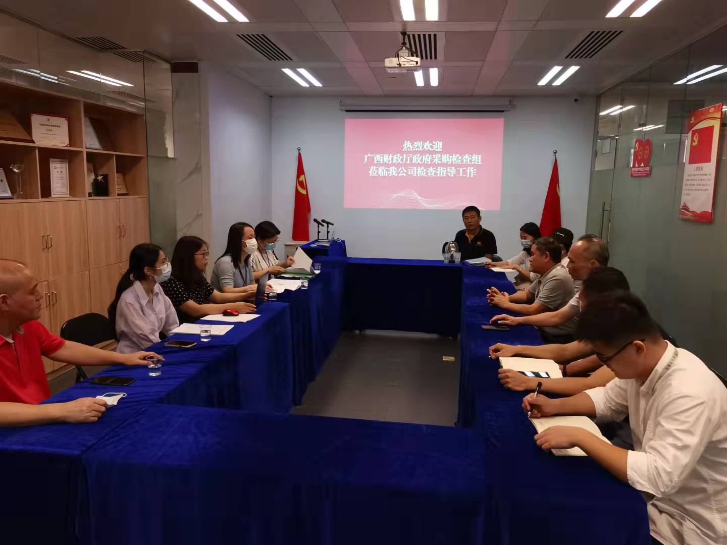 8月13日上午,廣西壯族自治區(qū)財(cái)政廳政府采購(gòu)檢查組蒞臨我公司進(jìn)行年度檢查現(xiàn)場(chǎng)查驗(yàn)工作。我公司總經(jīng)理陳浩、副總經(jīng)理黃藝組織公司政府采購(gòu)工作相關(guān)人員積極配合檢查組開(kāi)展工作。