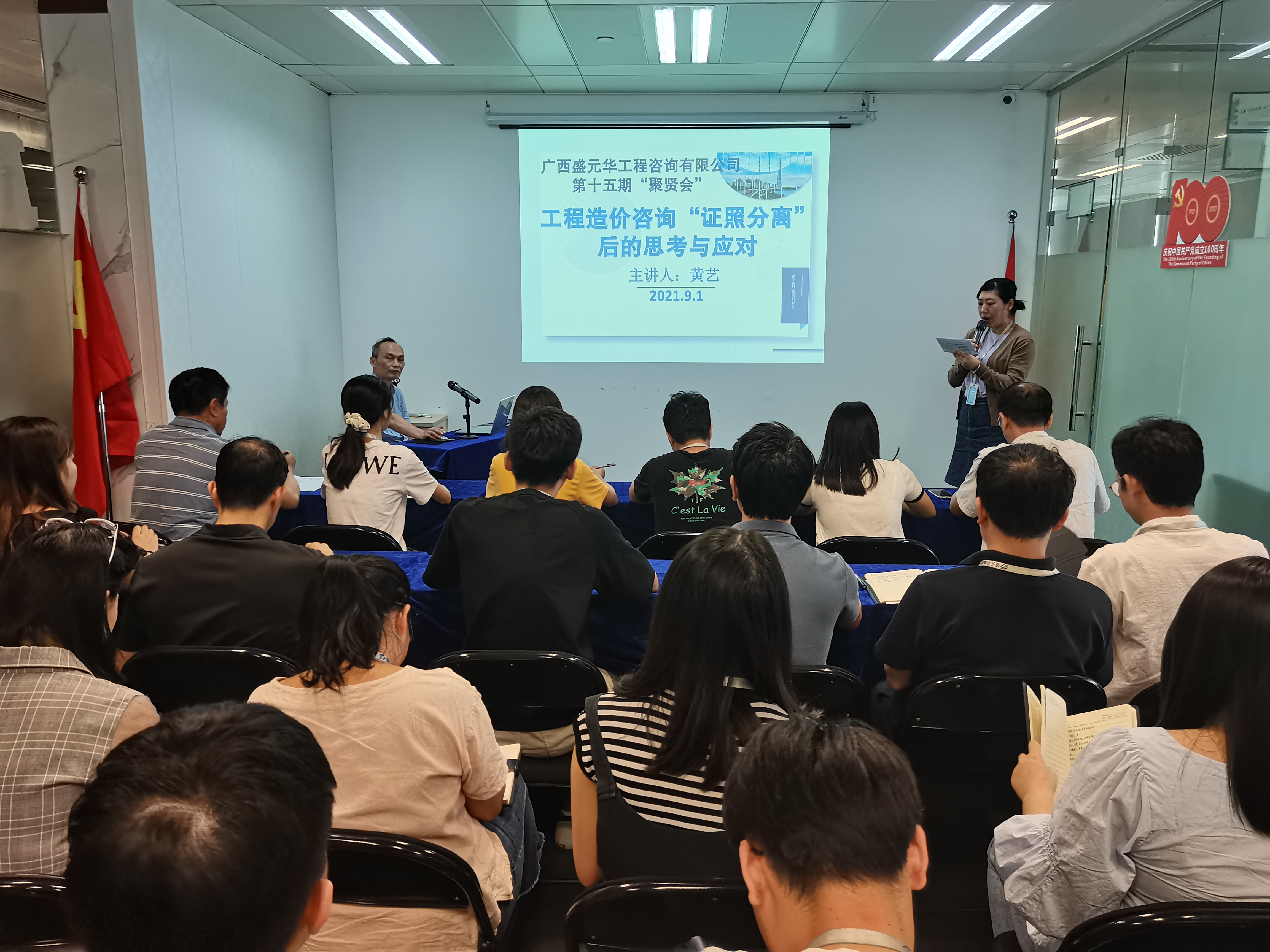 本期聚賢會主題為:工程造價咨詢“證照分離”后的思考與應對,由公司副總經理黃藝作為主講人,就這一行業熱點問題,與各位聚友們分享經驗,帶領大家一起思考和探討問題。